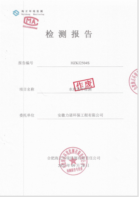 關于對委托單位:安徽力諾環保工程有限公司,項目編號:HZKI2504S檢測報告作廢的公示。