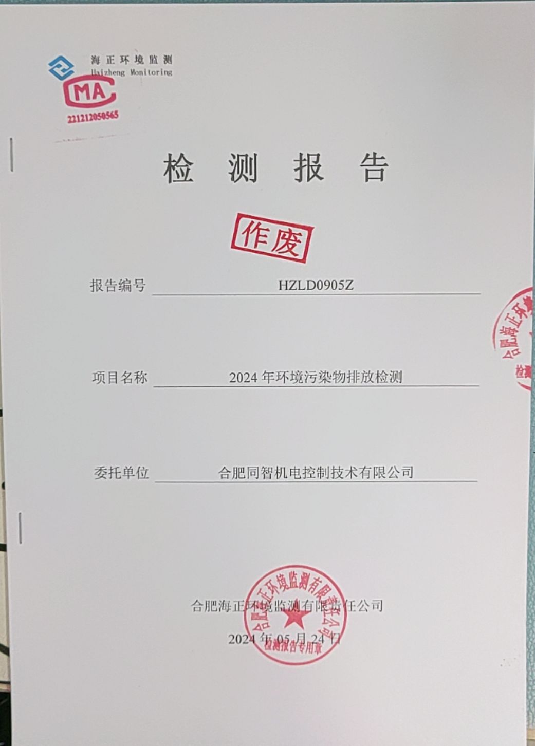 關于對委托單位:合肥同智機電控制技術有限公司,項目編號:HZLD0905Z檢測報告作廢的公示。